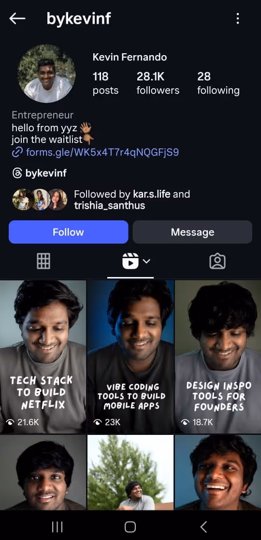 Kevin Fernando is a great example of why micro-series outperform random one-off videos in B2B. Instead of posting disconnected content, he runs a clear, recurring narrative: a non-technical founder building a tech product. Every video feels like a continuation of the same story, not a standalone post fighting for attention.